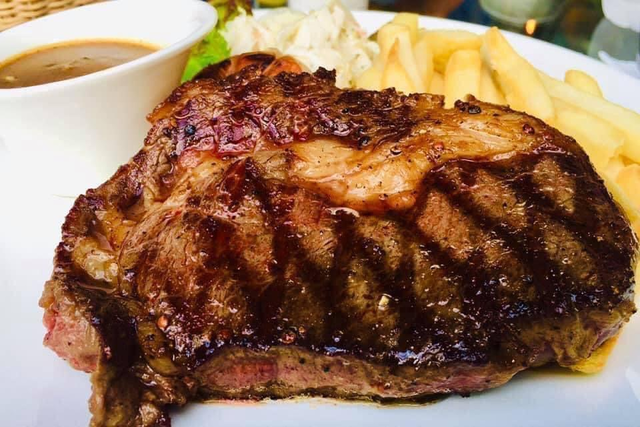 A masterpiece for meat lovers. Our juicy Ribeye is grilled to perfection, served with fries and peppercorn sauce. Taste perfection on a plate.